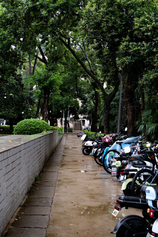 六月正值雨季,出去拍照的很多天都赶上了淅淅沥沥的小雨,于是留下了很多雨天的校园,包括那天和老王出去拍毕业照也是好巧不巧地赶上了雨天。天空都是过曝的,楼是欠曝的,机身是水淋淋的,心情也是湿漉漉的。